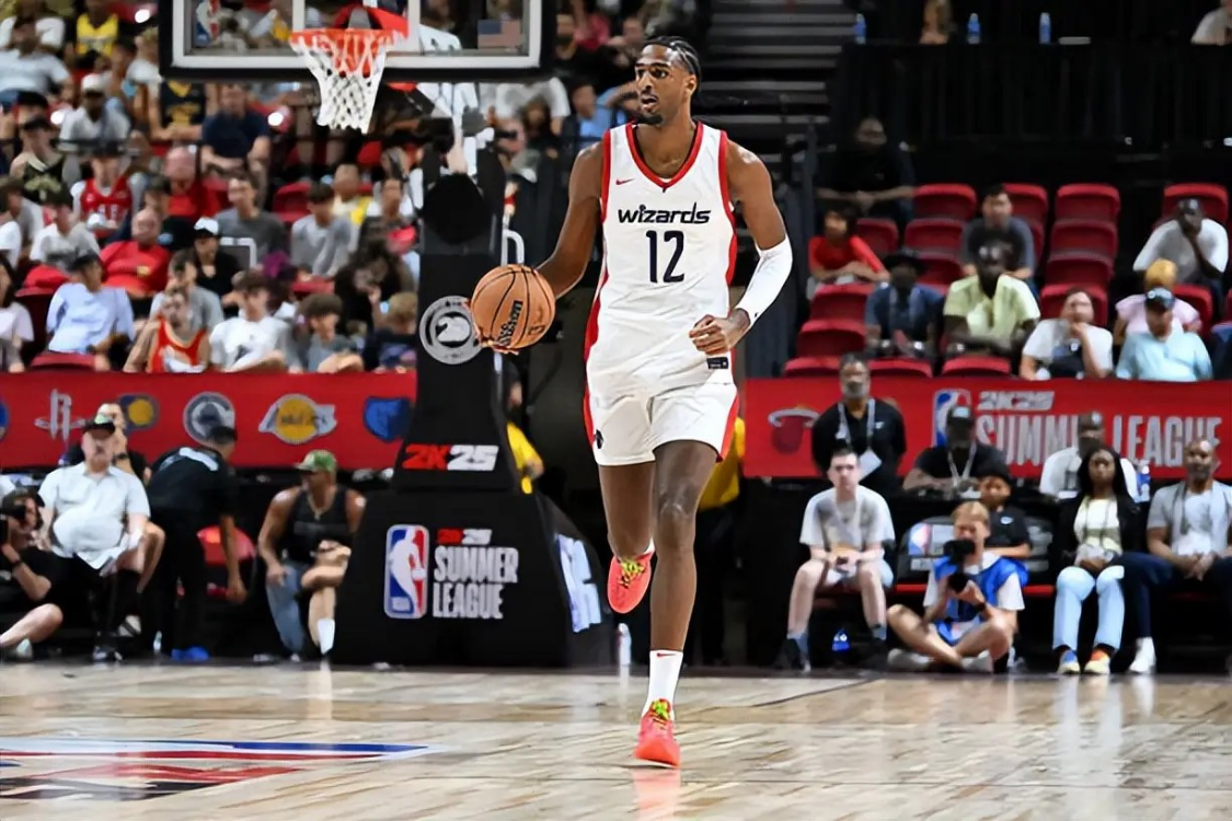 但是在奇才队25年的首场夏季联赛中,去年榜眼萨尔的发挥就让人非常失望。与太阳的比赛中,出战30分钟,10投5中拿到15分4篮板2助攻3封盖,三分线外3投1中,只看数据的话,或许还是一份不错的成绩单,但在场上的作用,让人不得不想起了另一位榜眼秀,那就是2020年的榜眼怀斯曼。